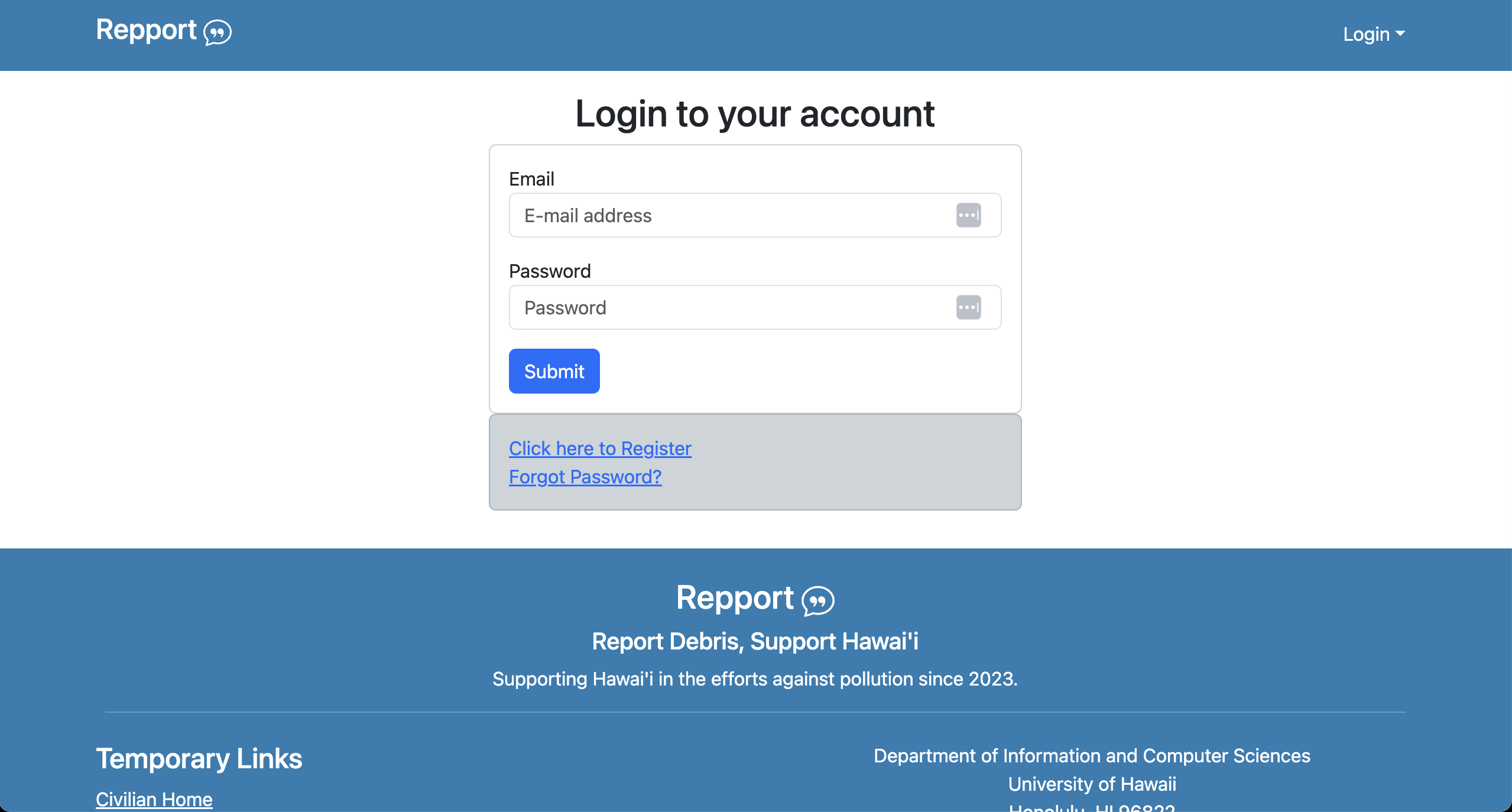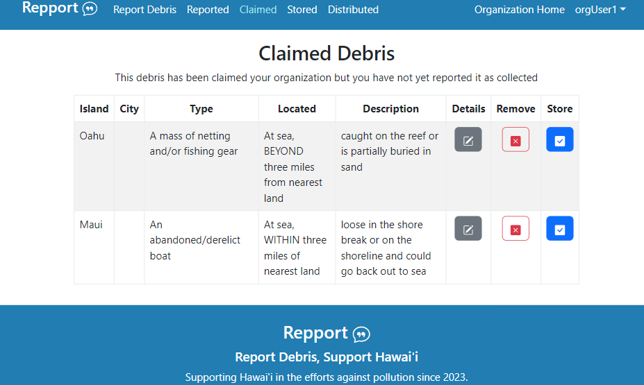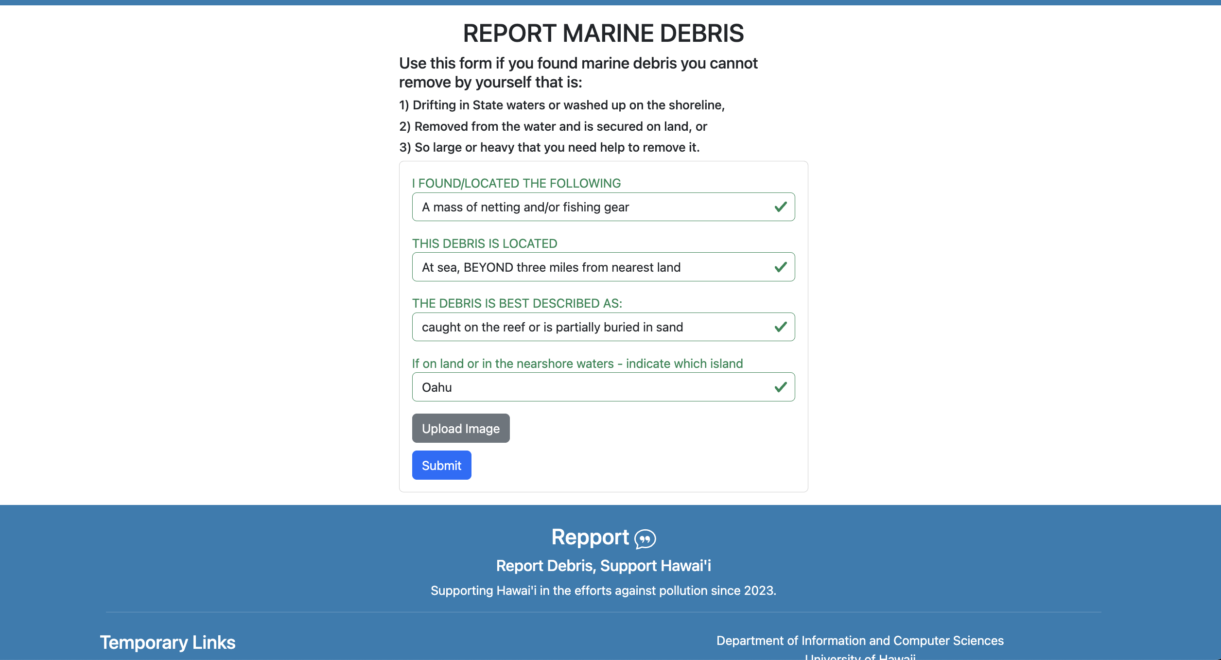 The REPPORT App seeks to bridge the gap in communication, data collection, and transparency in marine debris management in Hawai’i. By achieving these goals, we aim to empower local communities, organizations, and government agencies to work together efficiently, leading to cleaner oceans and a brighter future for Hawai’i’s natural environment.